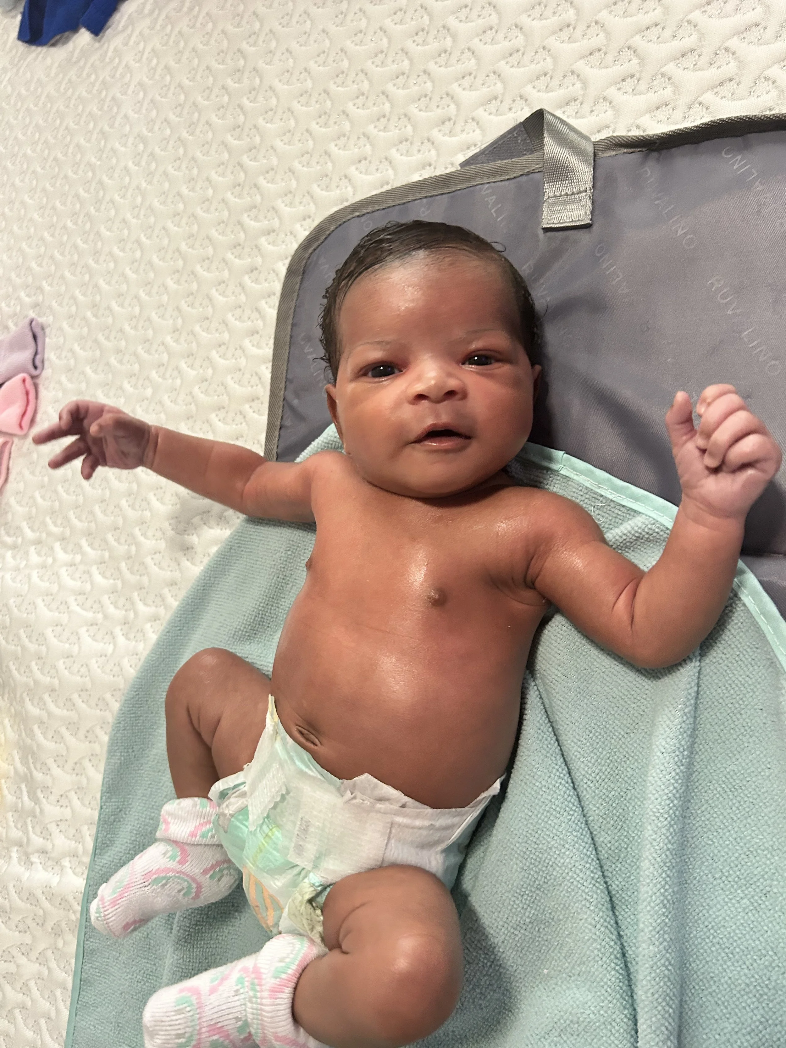 And letβs not forget about my little BabyBleu Sariah, who is already growing into a beautiful young lady. Can you believe it?! Sheβs so alert, opening her eyes, smiling, and making my heart sing every single day... well until itβs time for bed. π Thatβs when she turns into a whole new baby, and the real struggle begins, yβall! Sleepless nights, trying to calm her down and figure out a routine... itβs no joke!